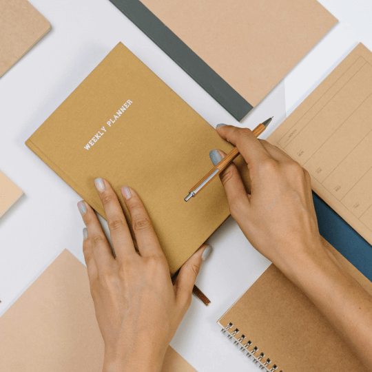 Our Weekly Planner Notebook offers a user-friendly layout helping you manage appointments, tasks, and priorities effortlessly.